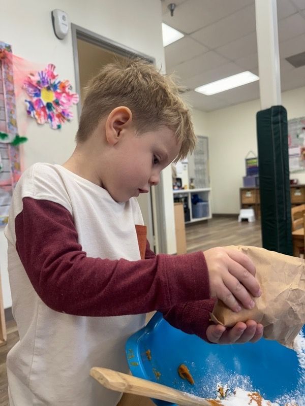 Fall is a fun season, and we can experience so many fun things. Cooler temperatures, changing leaves, hot chocolate, and of course pumpkins. We carved a Halloween pumpkin, talked about parts of the pumpkin and had so much fun. Then we talked about foods and desserts that can be made with pumpkin and how good it is for our body and has vitamins and fiber.