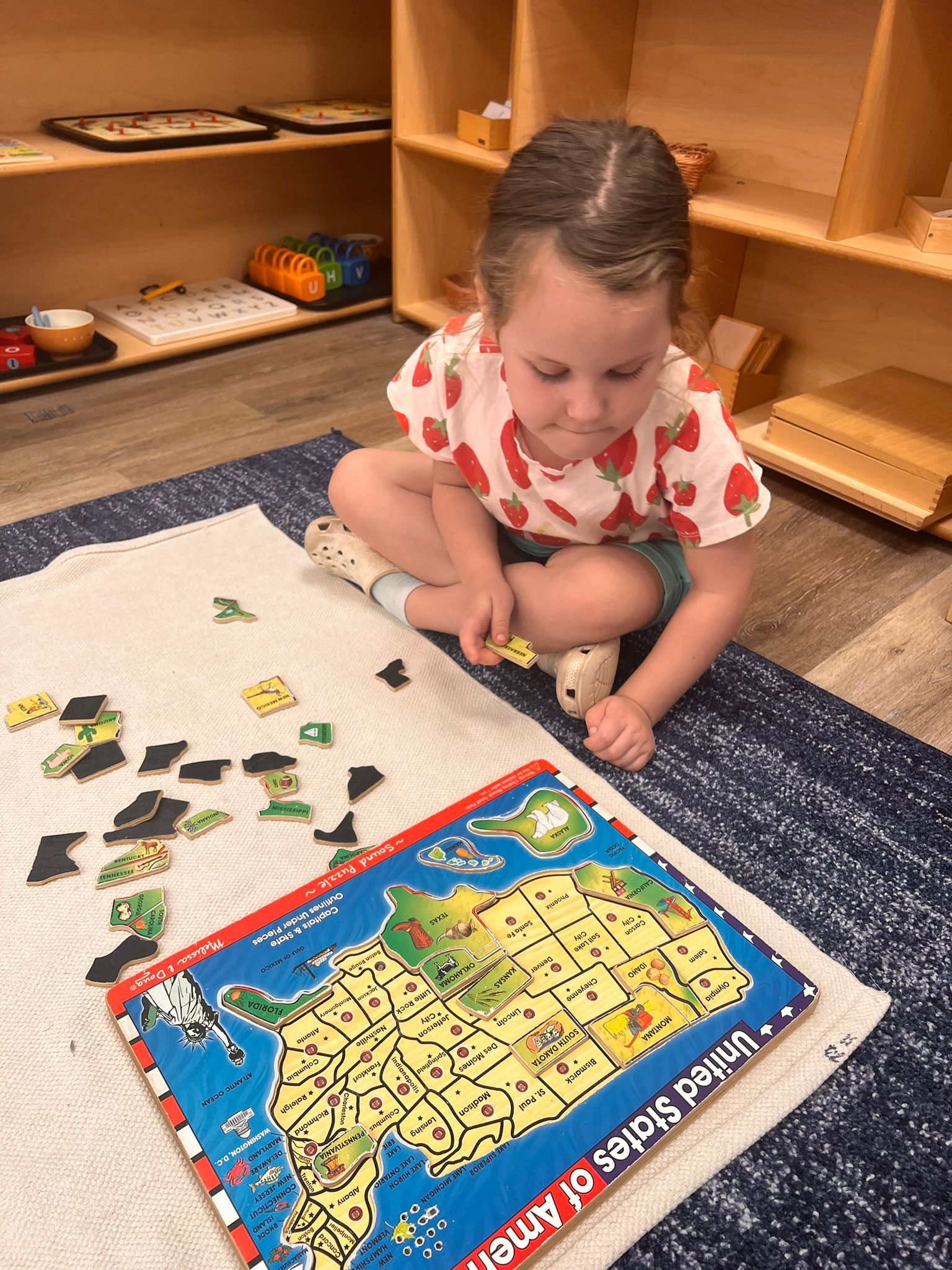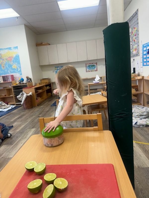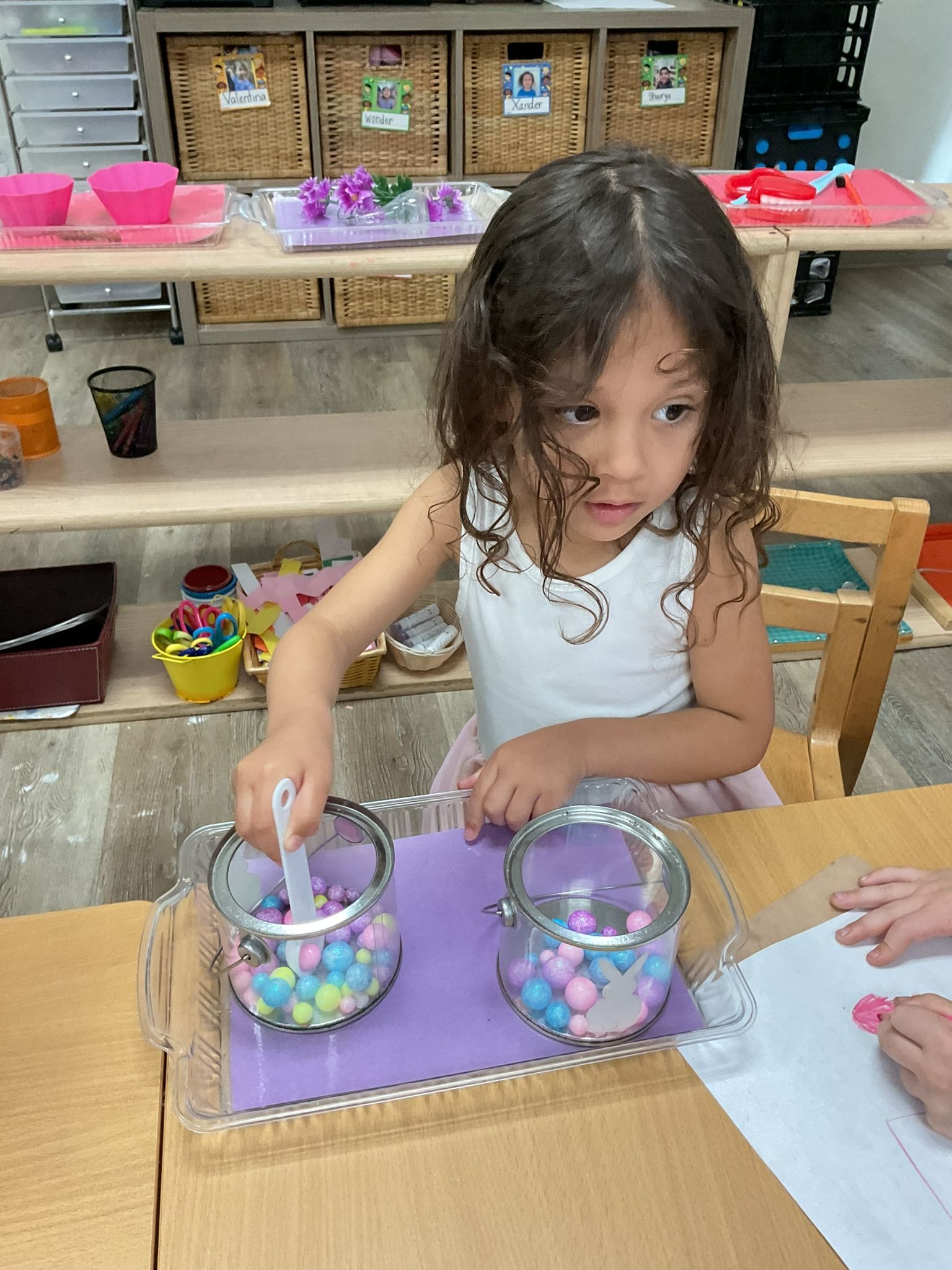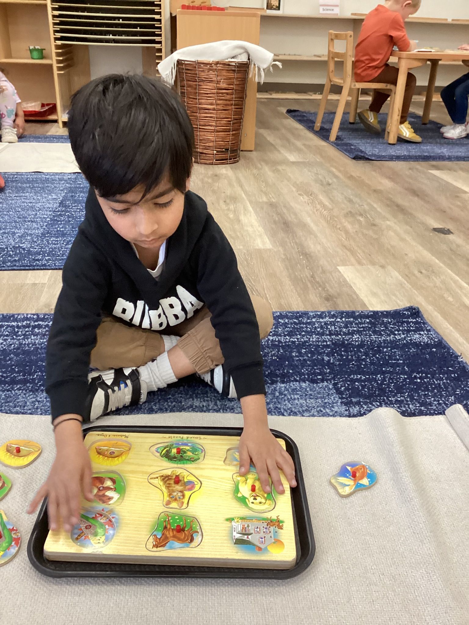 In Geography, we learned about how many continents we have and their names, where we live in the world, continent songs, Oceans and the seas of the world. In science we learned about Magnetic and Nonmagnetic as well as living and nonliving. In practical life we began to learn different skills such as pouring, spooning, cutting, and water works.