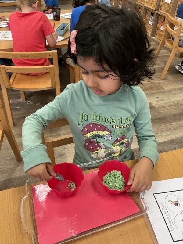 Throughout the month, we enjoyed reading several Dr. Seuss books, such as The Cat in the Hat, Green Eggs and Ham, One Fish Two Fish, and Fox in Socks. For our science activity, we learned about growing green mung beans. The children soaked the beans overnight, placed them in a bag taped to a window to get plenty of light, and kept them damp with water. Once the beans sprouted, we planted them in soil and continued to care for them as they grew.