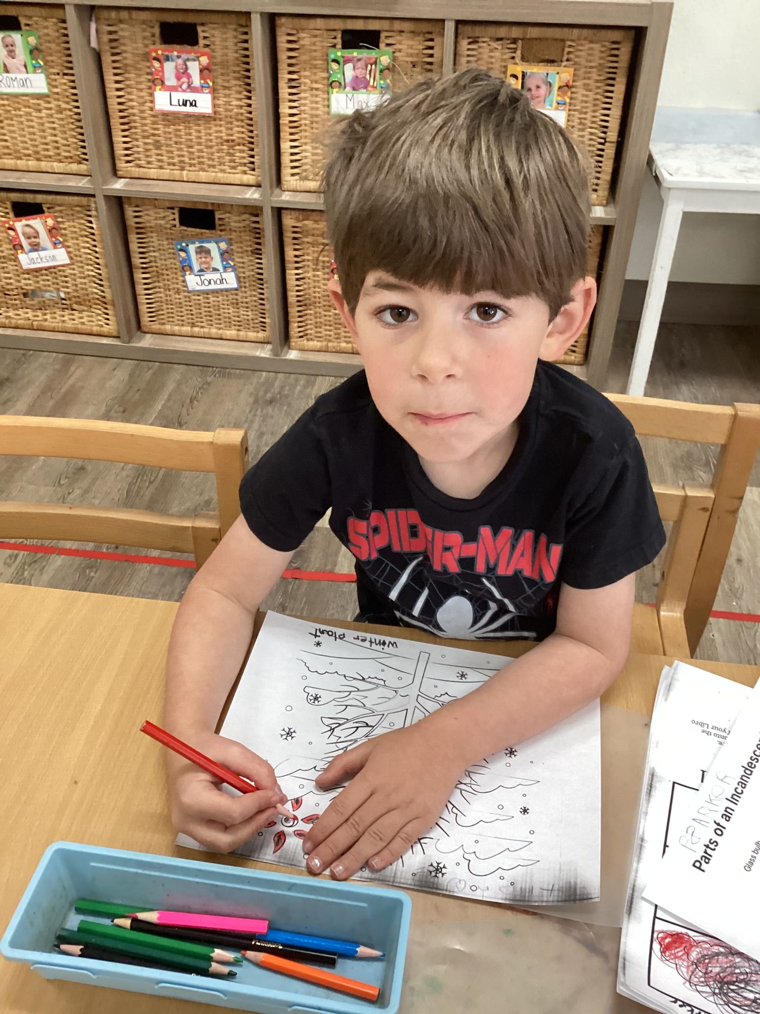 For the Month of December our theme is about celebrations around the world (Hanukkah, Kwanzaa, and Christmas). For Geography we discussed Europe. Facts about Europe: Europe is the second smallest continent with many countries. The continent that is east of the Atlantic Ocean, to the North of the Mediterranean, and to the west of Asia. For Zoology we discussed parts of the Horse such as mane, head, neck, fore legs, hind legs, and tail). For art we made pinecone, Menorah, ornament, and Christmas tree. We read The Giving Tree book and learned the importance of being a giver and a taker, you will often be the giver, but you should also be willing to take, expressing gratitude to people who help you is important.