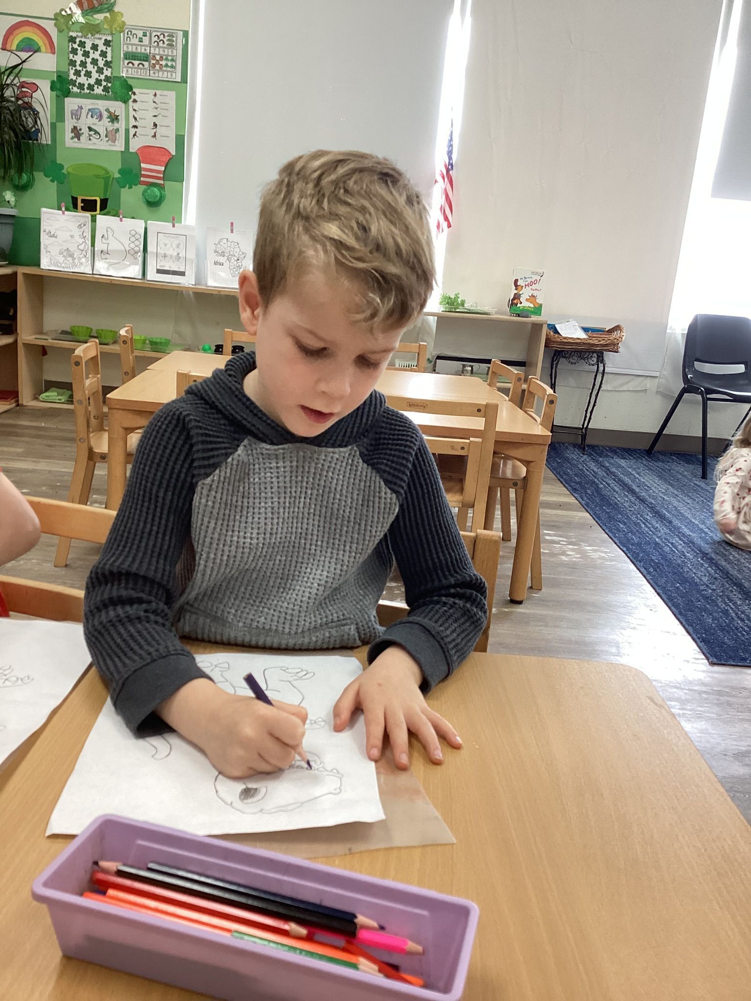 In Art, we celebrated the Lunar New Year by creating artwork, including coloring the flags of China and India. For Science, we studied the water cycle, learning how the sun warms water in puddles, causing it to evaporate into the sky as water vapor. This vapor then cools, forms clouds, and eventually falls back to Earth as rain, continuing the cycle. We also read Little Blue and Little Yellow to explore how colors mix and created art projects based on the book.