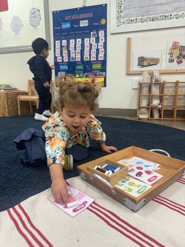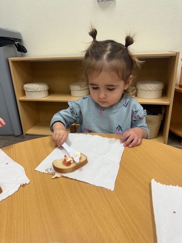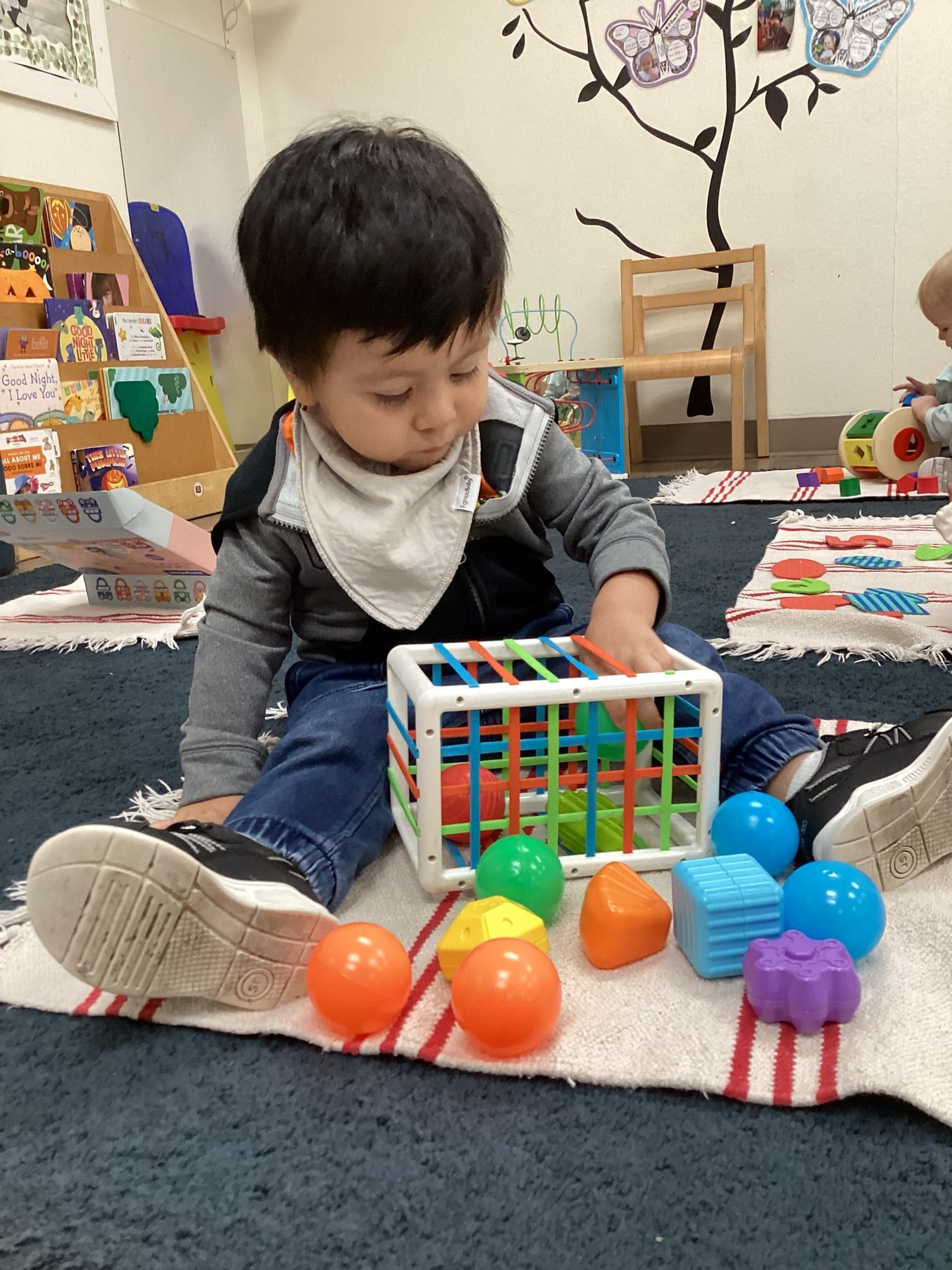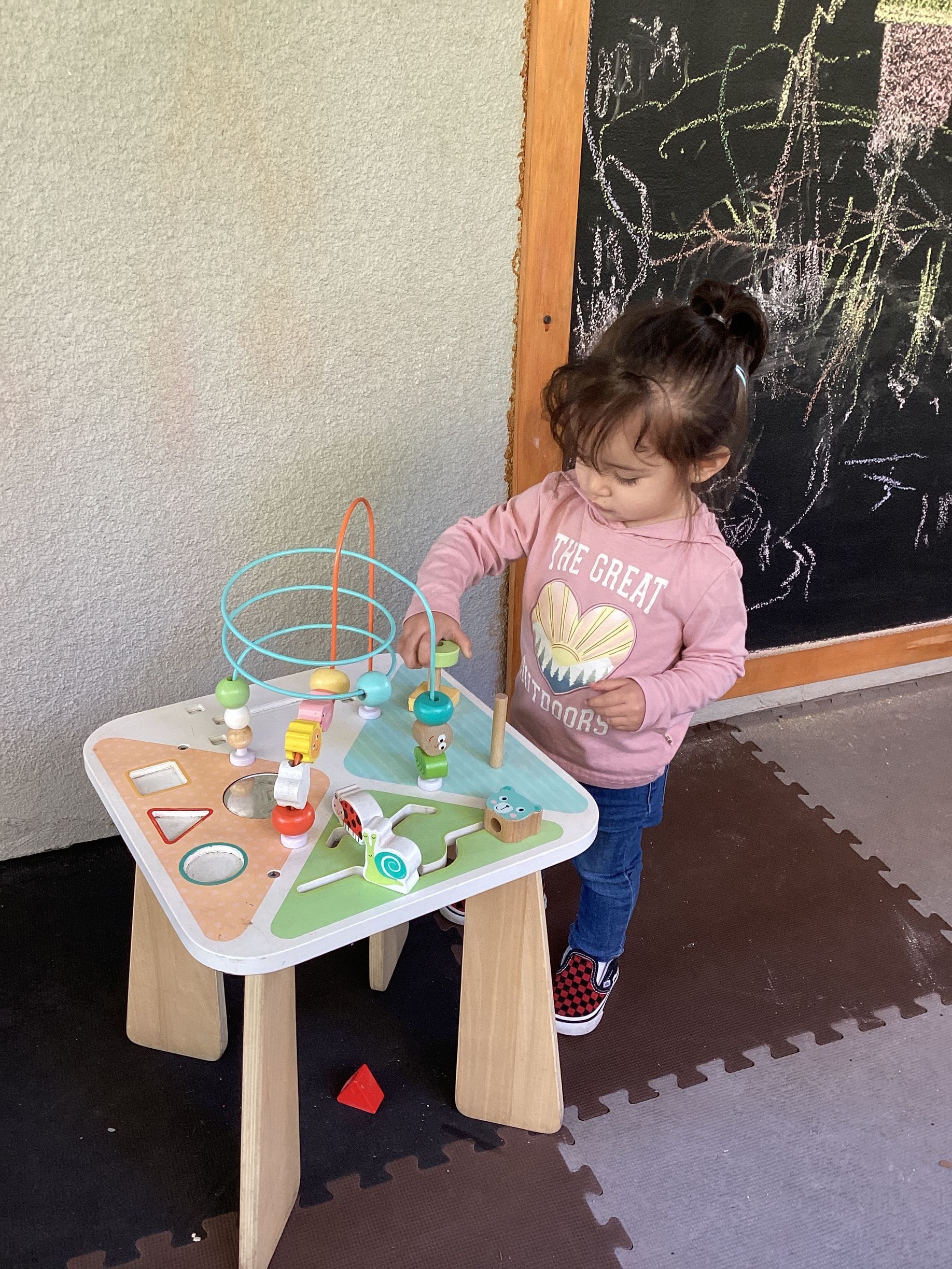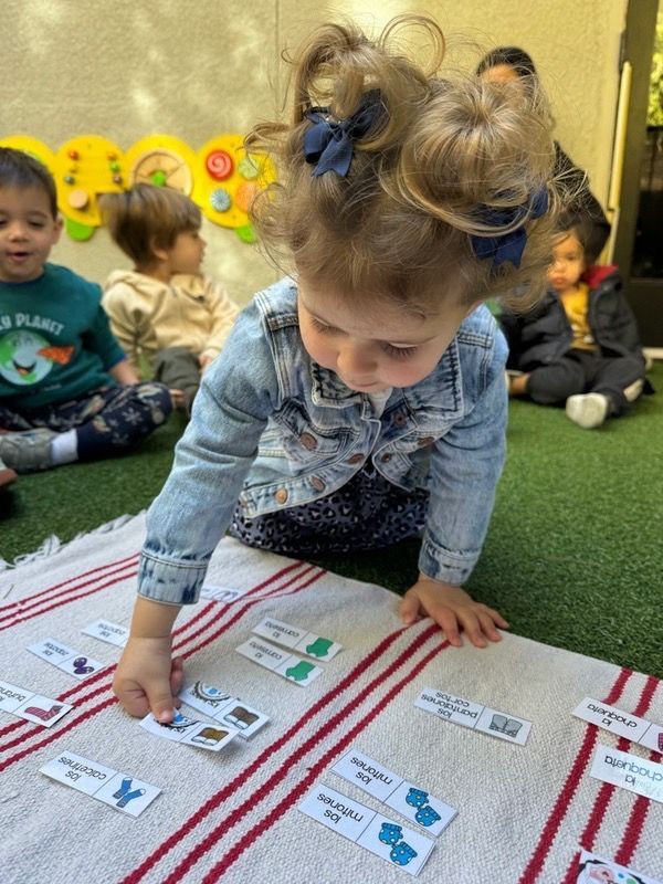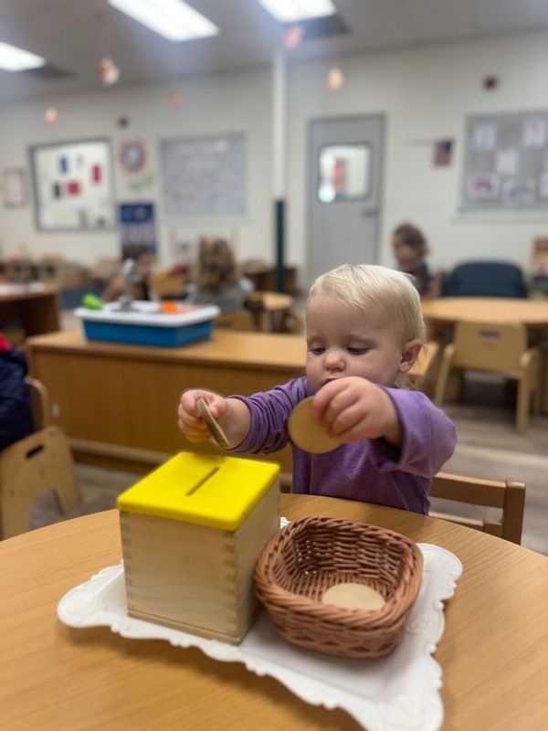 During circle time we sang songs like, “The Wheels on the Bus”, “The More we get Together”, and “I Love You, You Love me”. We practiced the numbers 1-4 in English and Spanish. We also use this time to demonstrate how to do a proper work cycle by grabbing work, taking it to the table and putting it back on the shelf. This month we had the children work on spooning balls from one bowl to another bowl.