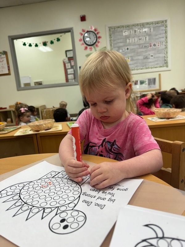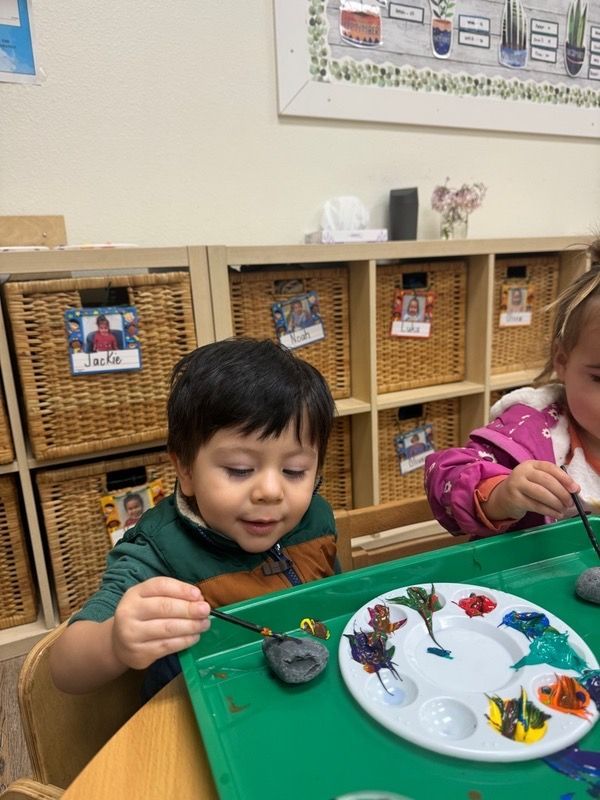 February was such a blast in room 2! It was full of joy and love! February’s theme was Cultural Awareness and Friendship. The toddlers learned how everyone in our classroom is different in many ways and learned how to respect one another. We talked about the importance of having friends and the different ways we can make friends; talking nicely, sharing, and playing with one another. During circle time we danced to music from around the world. The children really enjoyed all the arts and crafts we did for Valentine’s. We made hot air balloons, heart paintings, and gnome dot painting.