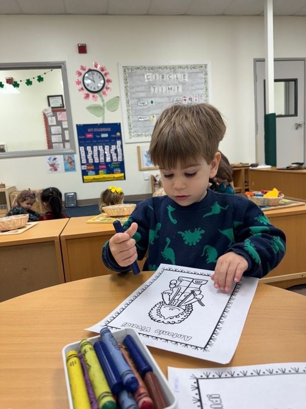 In celebration of Dr. Seuss’ birthday, we enjoyed reading Green Eggs and Ham, which was our literature book of the month. We also focused on the letters W, X, Y, and Z. To honor St. Patrick’s Day, we did a fun rainbow experiment with shaving cream and food coloring. For enrichment, we made green eggs and ham, created Dr. Seuss hats, and painted rainbow rocks. For music, we learned about the composer Antonio Vivaldi, and in Spanish, we practiced learning the colors of the rainbow.