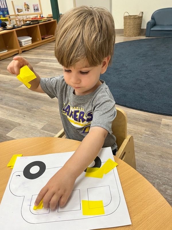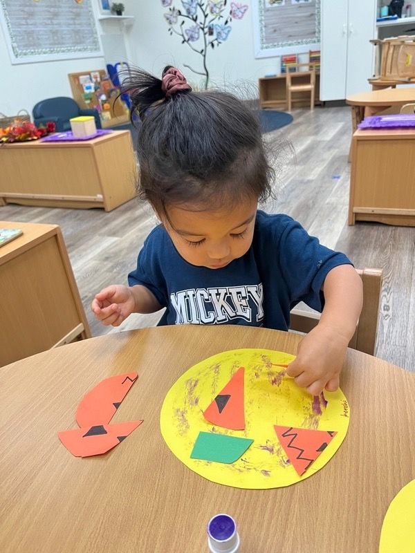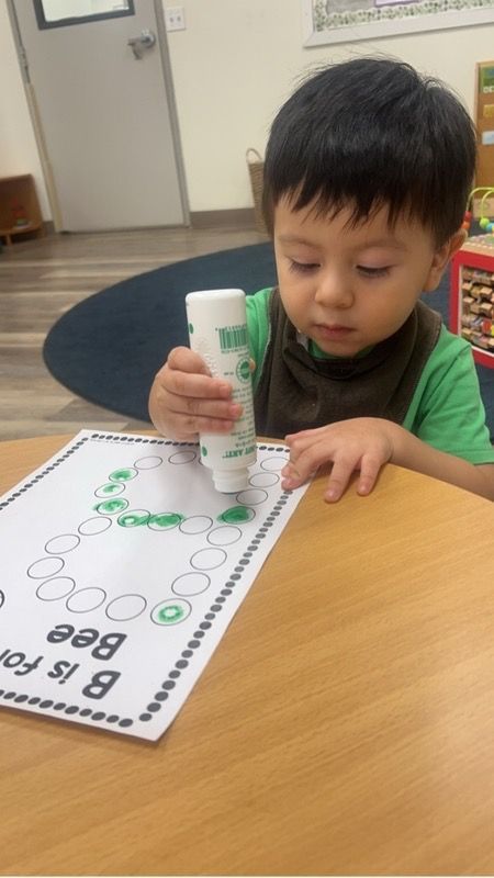 September’s theme was, Welcome to School and All About Me. For Art, the children glued yellow paper squares to an outline of a school bus to help develop fine motor skills, hand-eye coordination, and an understanding of stickiness. They also had an opportunity to be creative and use their imagination by coloring a portrait of their family. Lots of scribbles! This month we taught the letters a, b, c, and d. The children did an art craft of the letter a sideways as an alligator's head, and they glued on the teeth and eyes. They loved it! They had fun using dot markers to color the outline of the b for butterfly. For letter c, I cut colored circles, and I had the children glue them in the shape of the letter c for caterpillar. And for letter d, I used each child’s handprint with paint to create a duck. They made their own duck differently by gluing it and adding google eyes and a beak.
