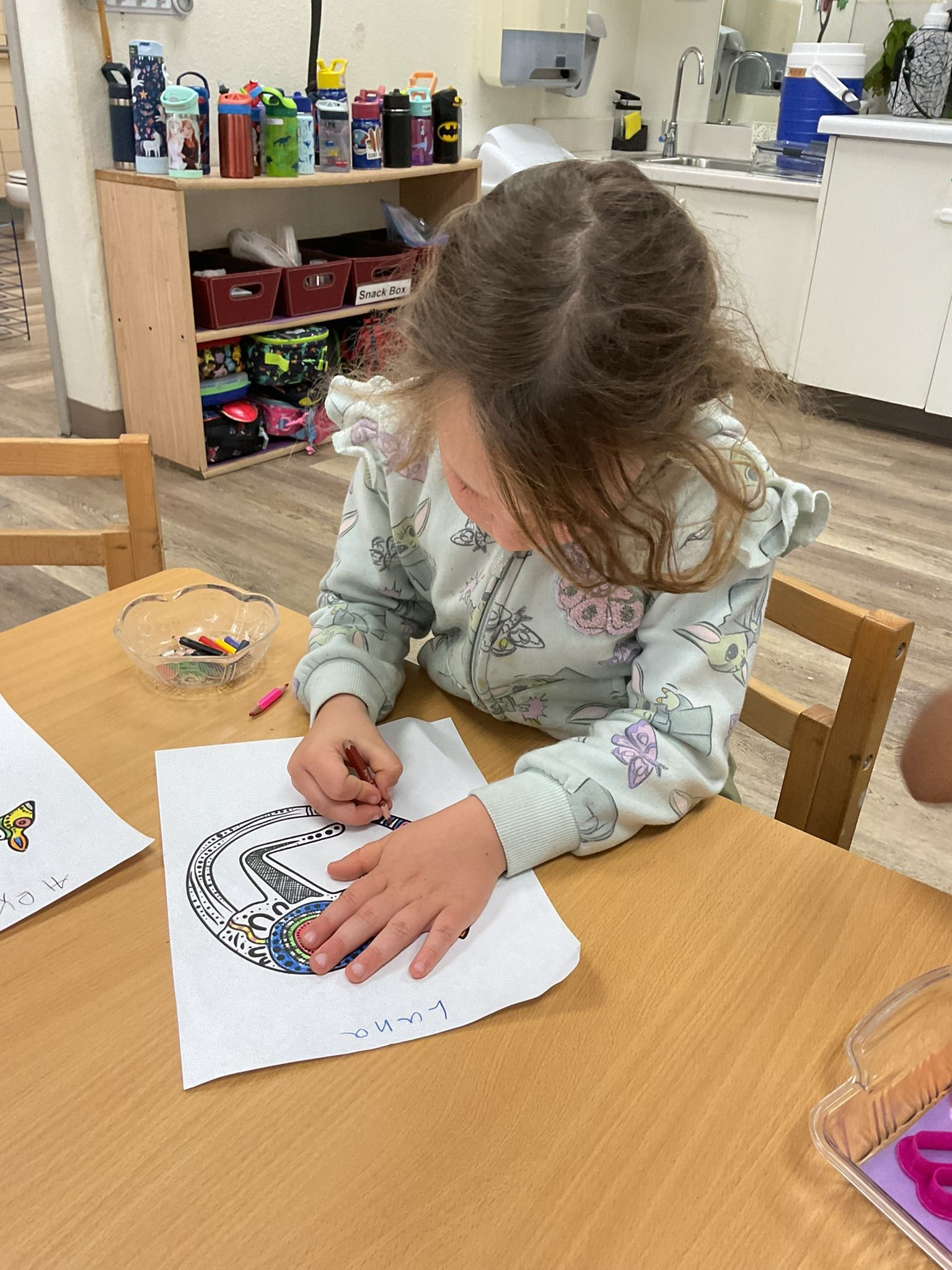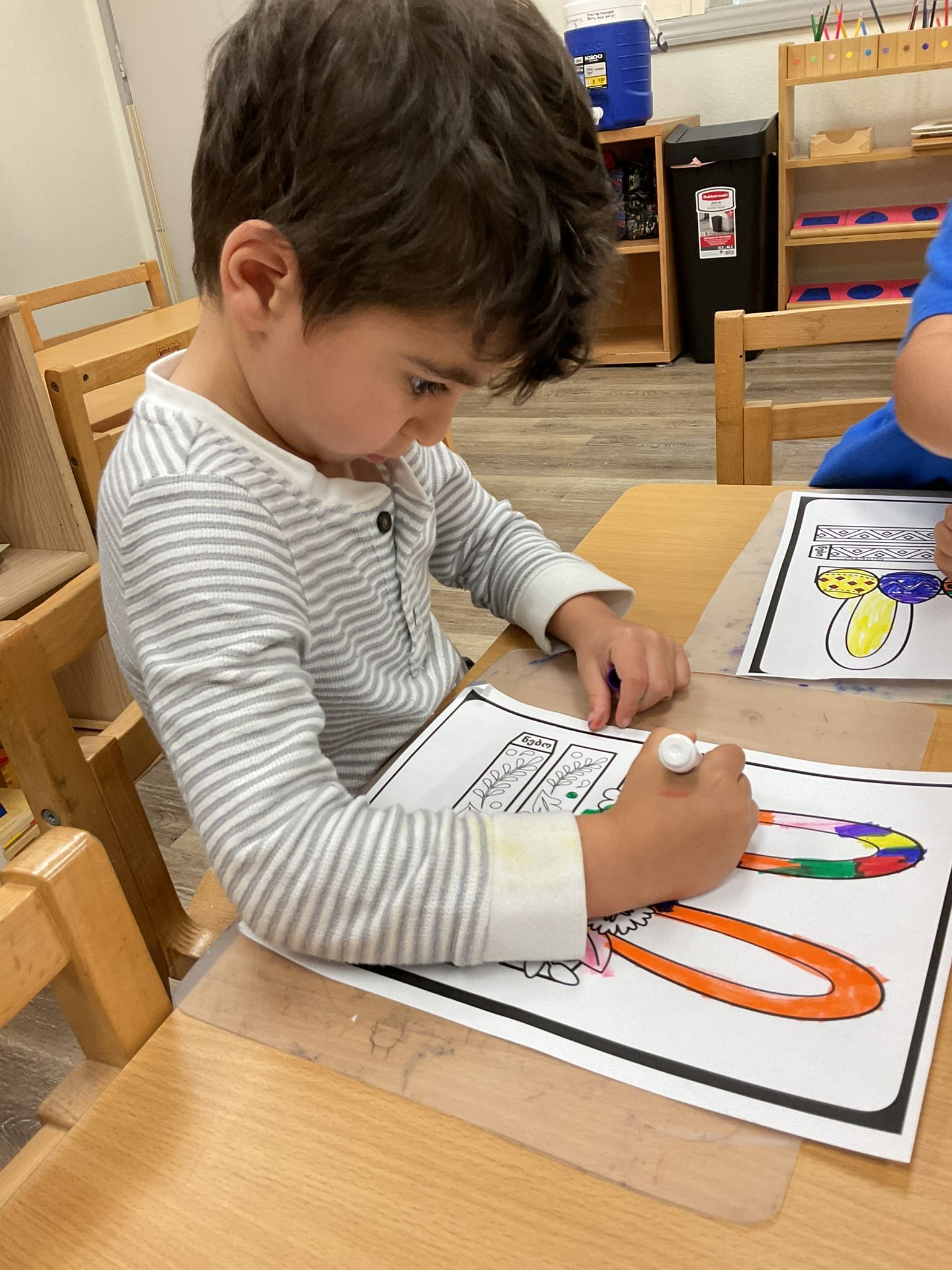 Our music time was filled with joy as we listened to the classic lullaby “Twinkle, Twinkle, Little Star.” We combined our musical exploration with an art activity, where the children colored beautiful stars using primary colors, reinforcing both color theory and creativity.