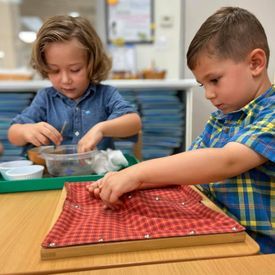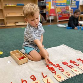 “The Montessori child does not learn math, h/she experiences it.” The Montessori Mathematics apparatus serve as a concrete method where the children learn concepts of mathematics by working on tangible mathematics. A child begins learning mathematical concepts through the use of concrete mathematical material such as the Number Rods, Sandpaper Numbers, Beads, Symbol Cards which familiarize the child with the decimal system.