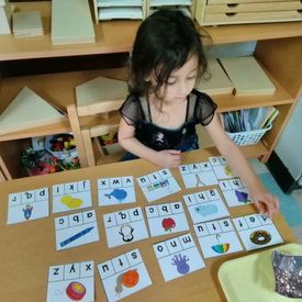 The children learn to read through a series of graded exercises and activities. In the first stage, they learn phonic sounds through various fun activities, recognizing and associating letters with phonic sounds. They then start reading, building and blending words and eventually progress to Consonant Digraphs and Vowel Digraphs. The last stage of reading is the introduction to Early Grammar, Comprehension and Creative Writing. All activities are done with concrete manipulatives that can be felt and touched.