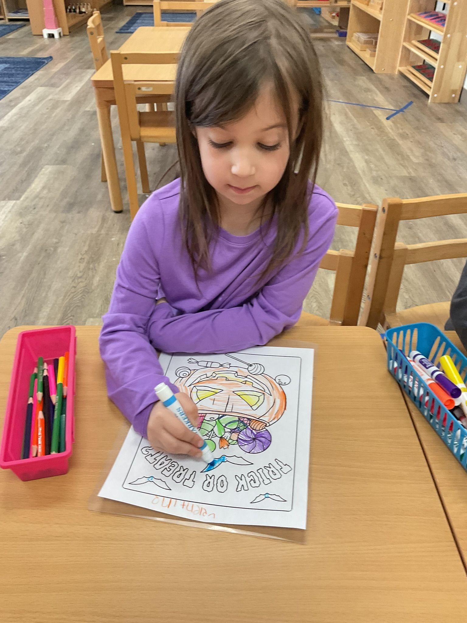 Throughout October, students learned about the continent of North America, discovering its geography, landmarks, food, and music. They created colorful art projects inspired by their studies—everything from bison crafts to bright orange cacti paintings! Our young learners also continued developing important grace and courtesy skills, such as greeting others politely, caring for their environment, and showing respect for friends and teachers.