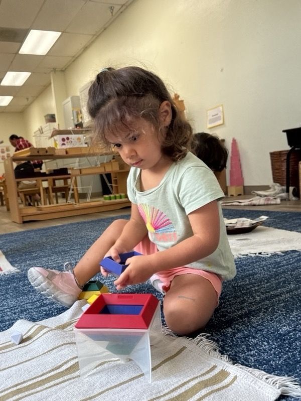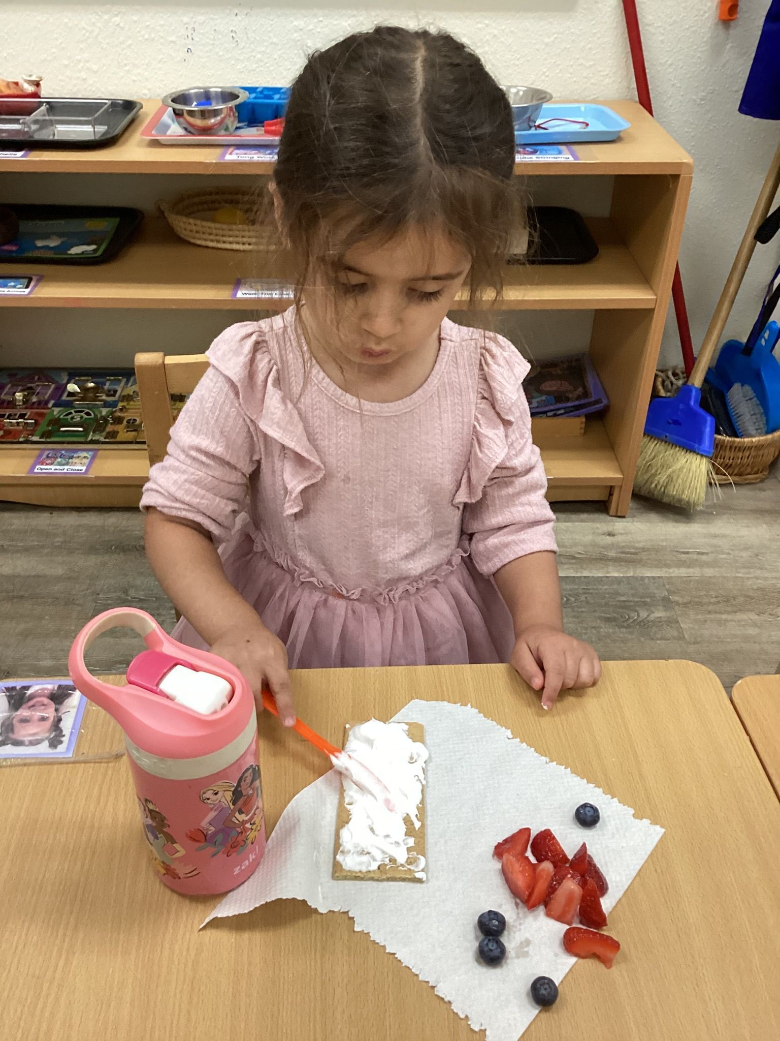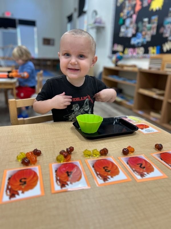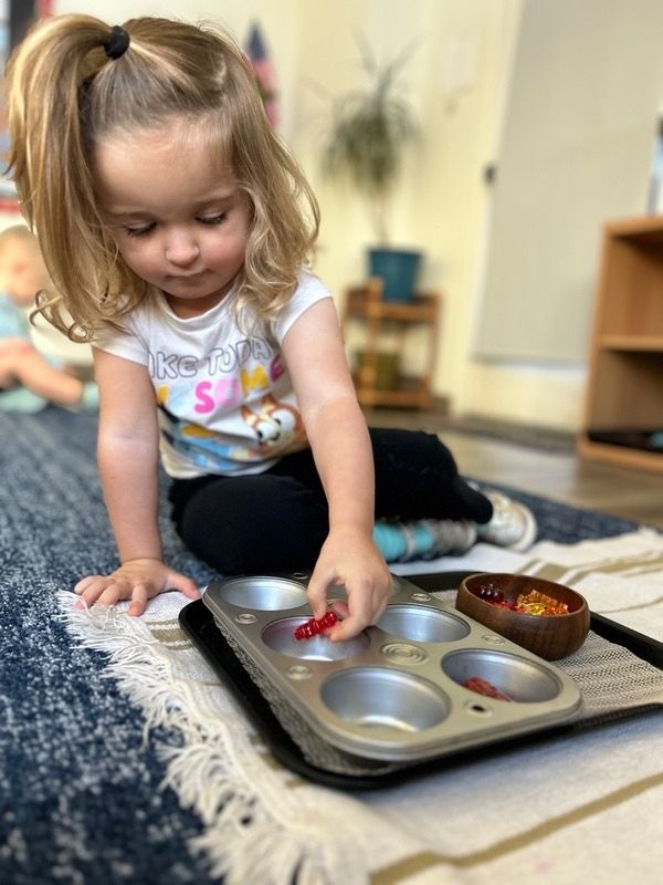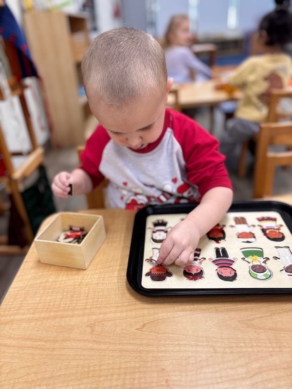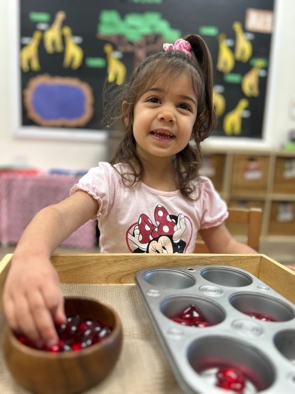 We focused on grace and courtesy lessons that help build independence and respect in the classroom. The children practiced pushing in their chairs after getting up from the table, handing objects politely to teachers and friends, and carefully rolling up their work mats when finished. They also enjoyed practicing transferring activities, which strengthen fine motor skills and concentration.