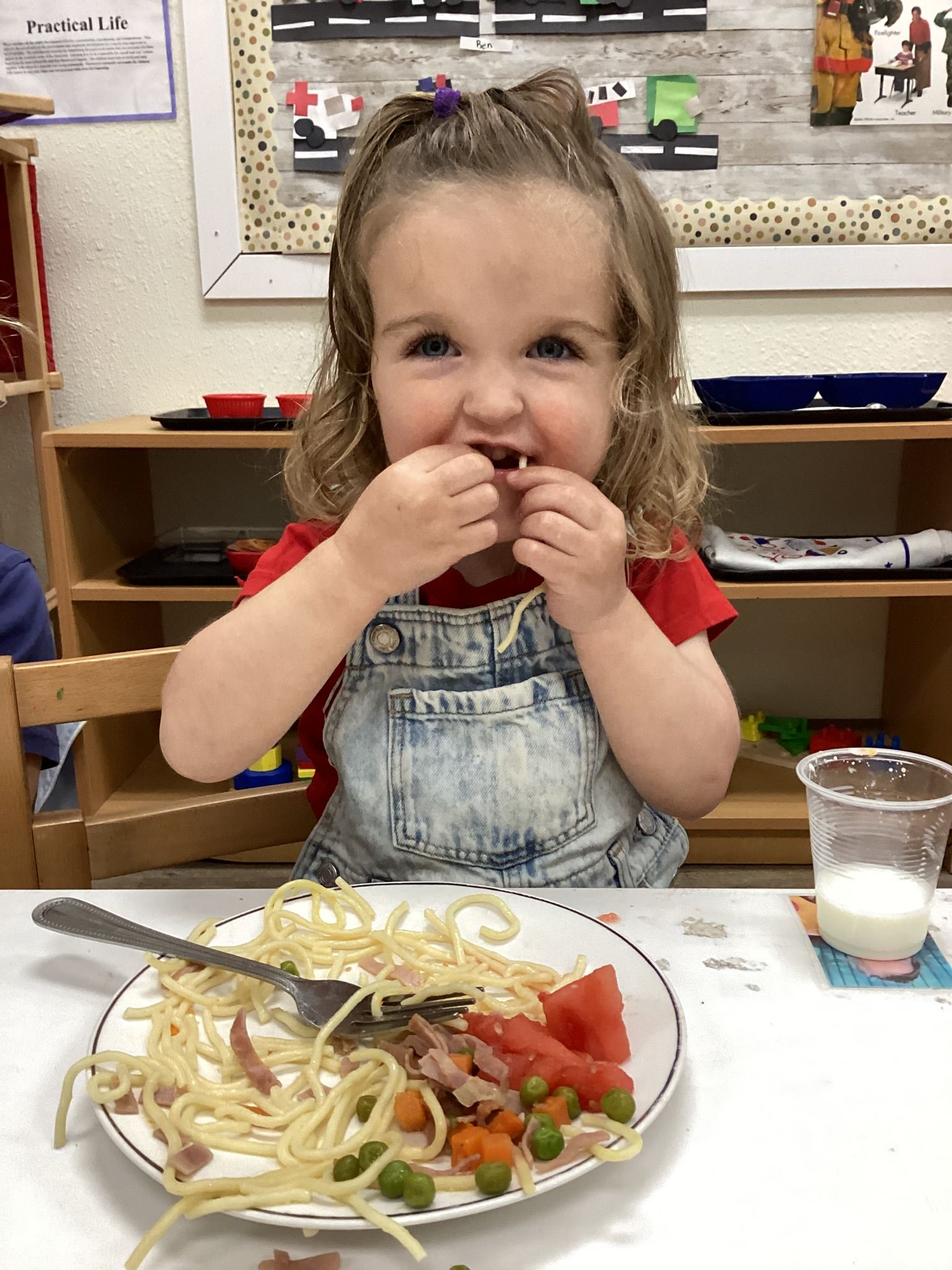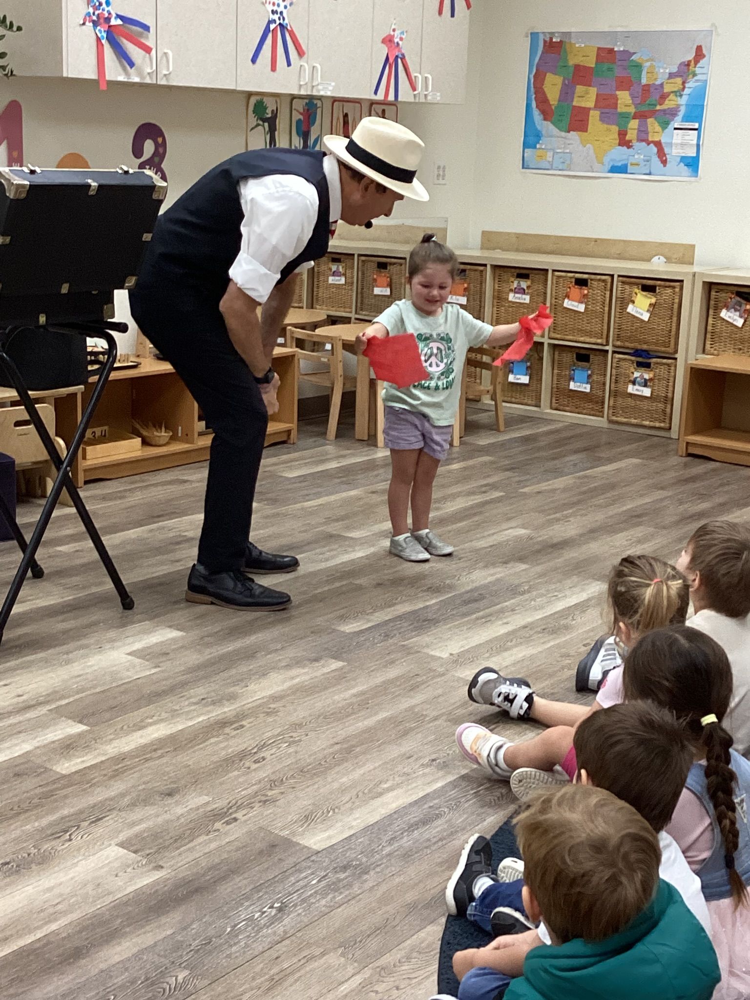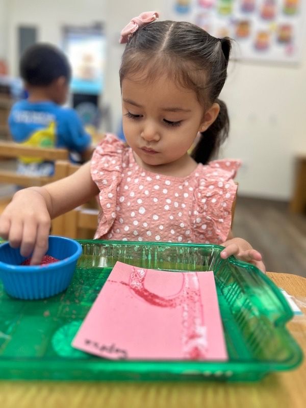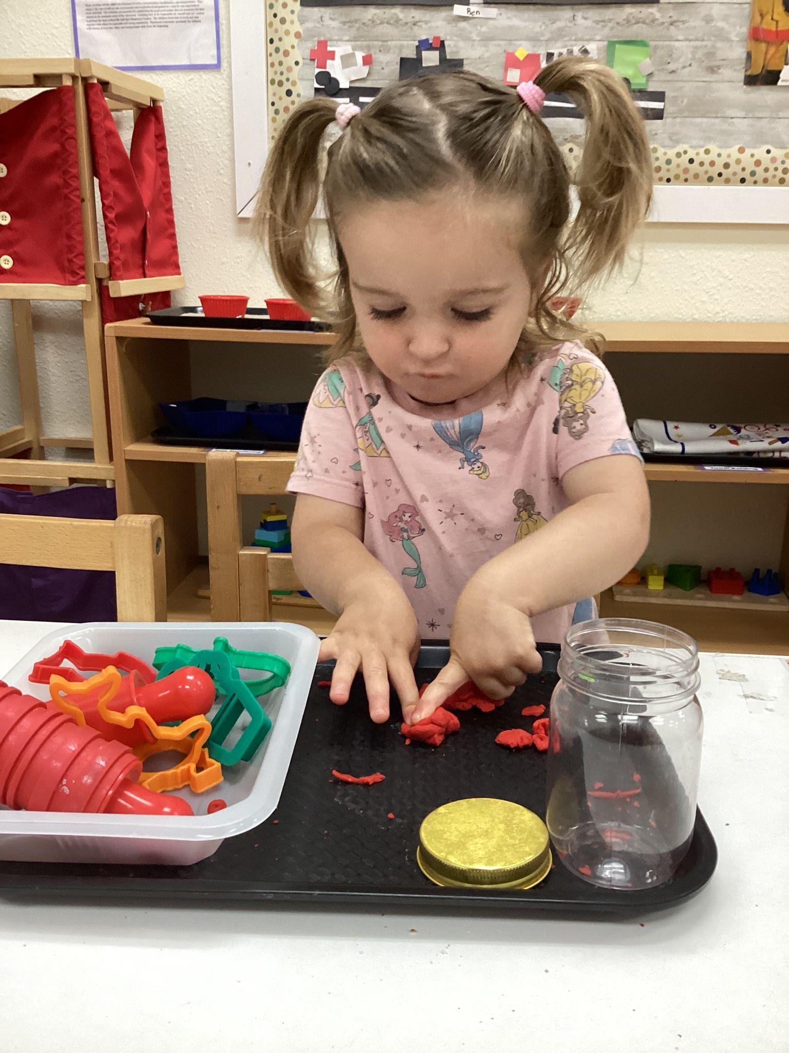 We focused on grace and courtesy lessons that help build independence and respect in the classroom. The children practiced pushing in their chairs after getting up from the table, handing objects politely to teachers and friends, and carefully rolling up their work mats when finished. They also enjoyed practicing transferring activities, which strengthen fine motor skills and concentration.