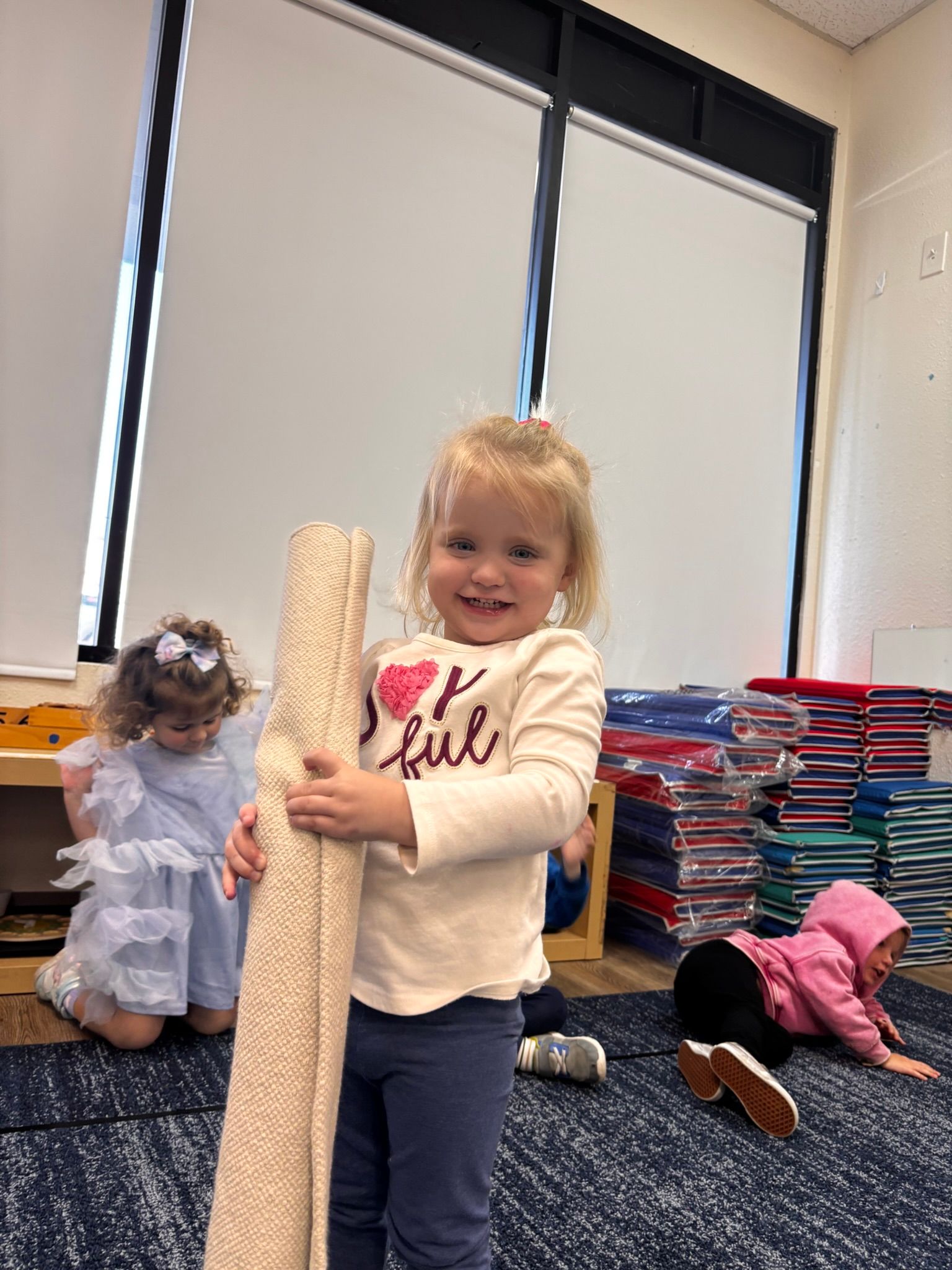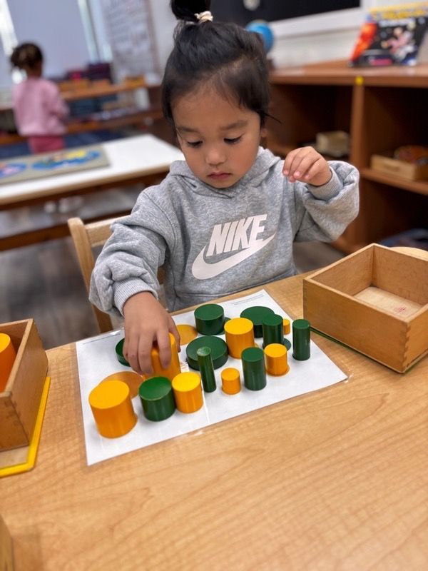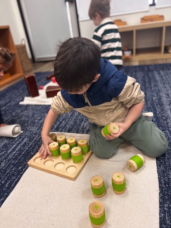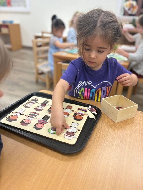 During circle time, we explored the question, “What do we do at school?” Together, we practiced how to pick up our work and clean up after ourselves. As part of our practical life activities, students learned to use a dustpan and broom and how to wipe down their tables.