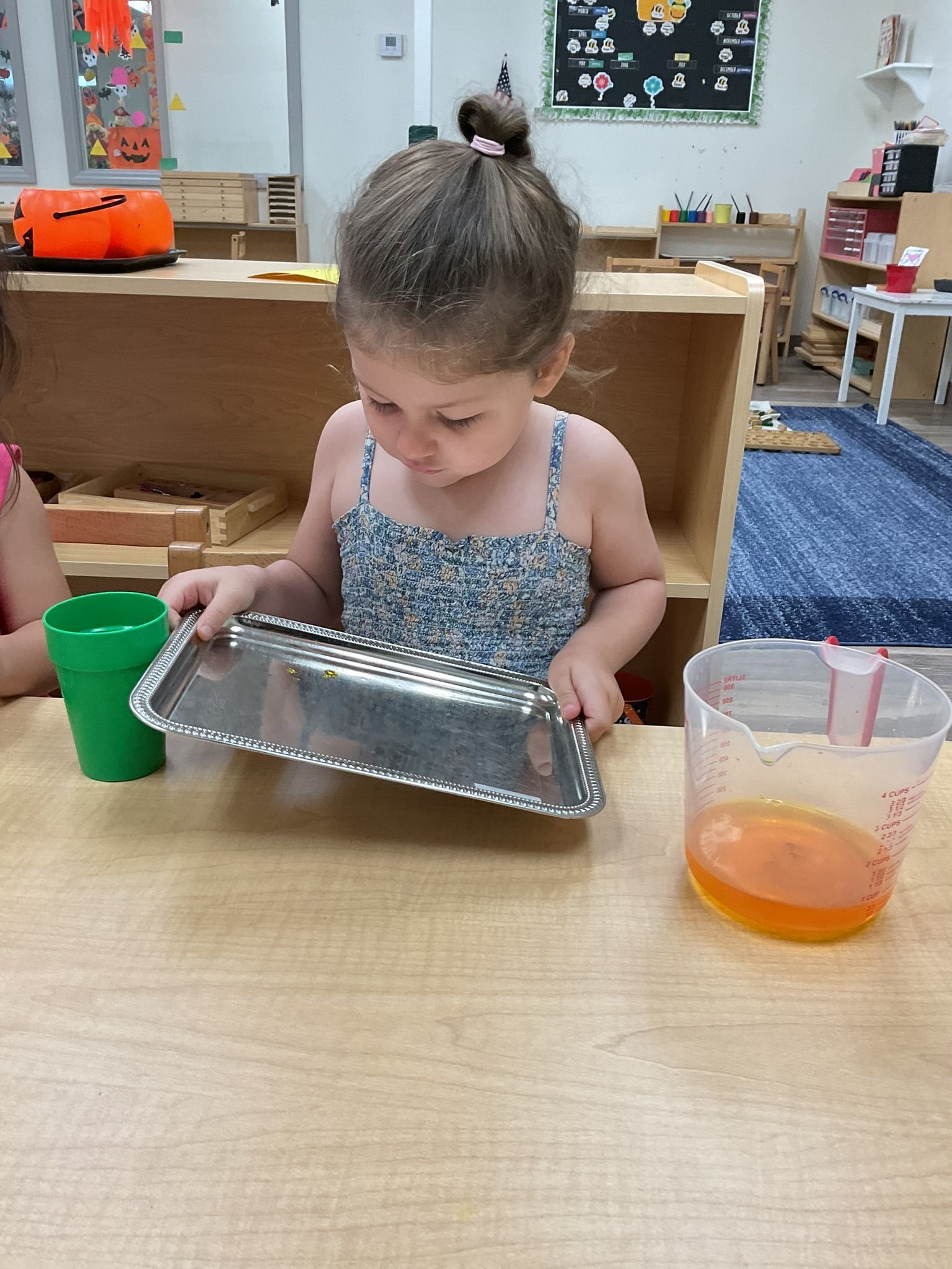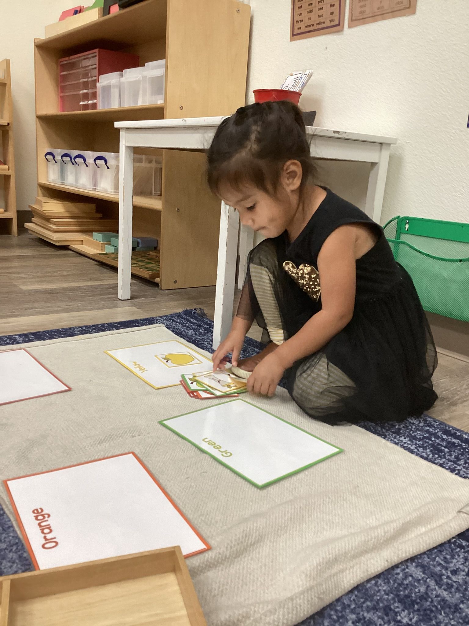 We have been working on grace and courtesy like pushing in our chair, saying please and thank you, waiting our turn, introducing ourselves, and practicing when to use our inside and outside voices. It has been extra fun because as we work through the curriculum, we are also learning Spanish, and I love to see the children absorb all these Spanish words. I can now say “sillas” and the children know that I mean “chairs”, I can now say “mesas” and the children know I mean “table” with the context that I use it in. I love to see it.