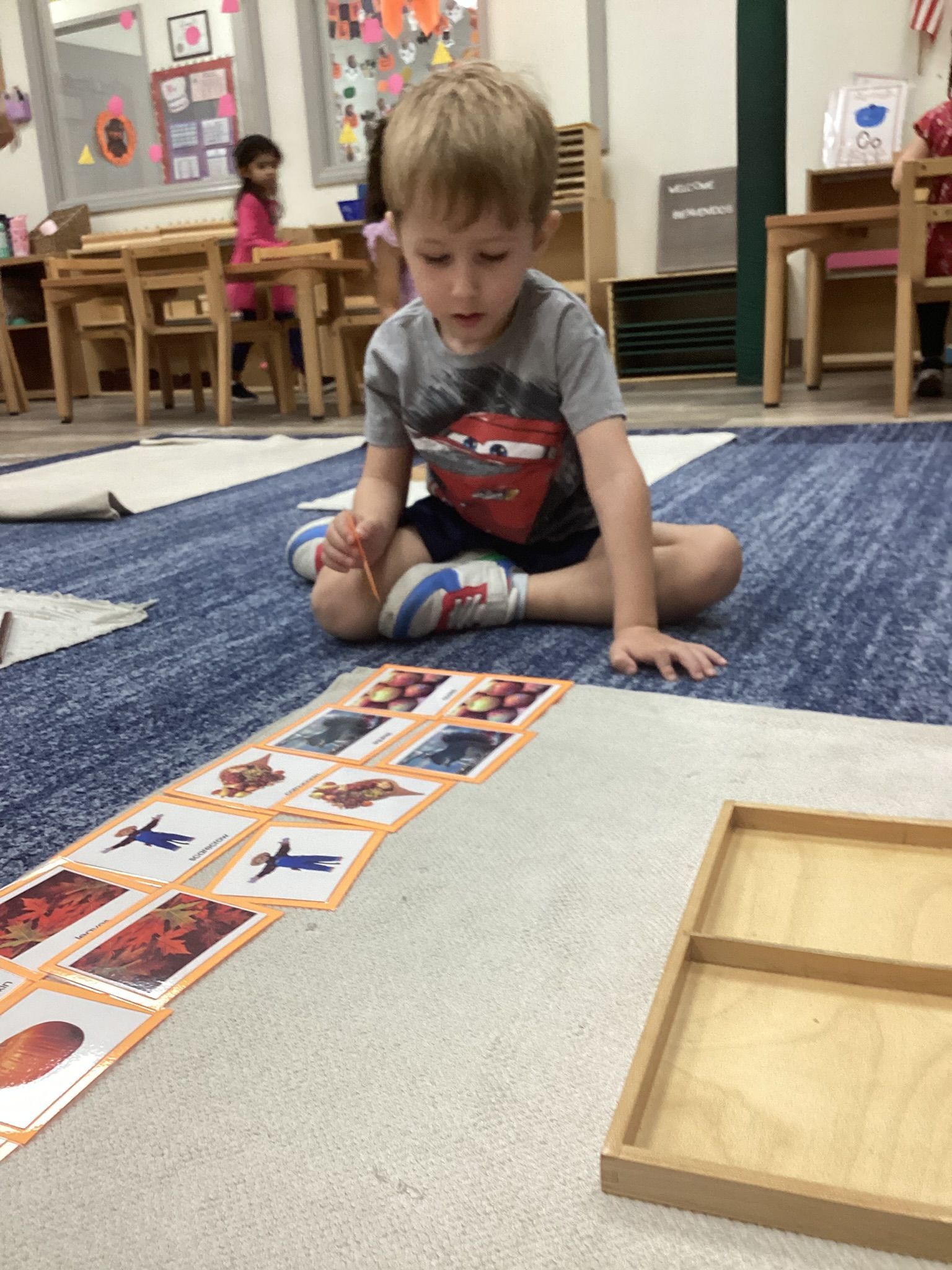 Our book of the month, Going on a Leaf Hunt, sparked conversations about leaves changing color in the fall. We even did a fun little experiment where the children dropped a leaf and counted how many seconds it took to reach the ground—an easy, hands-on activity that they really enjoyed.