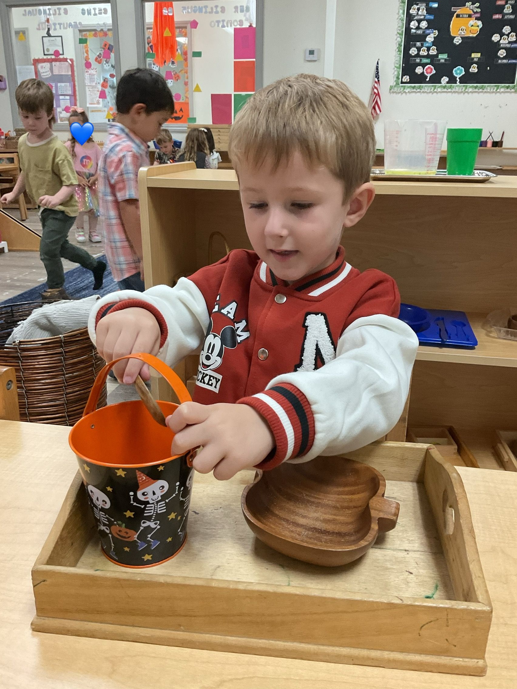 October was such a fun and exciting month in our classroom! The children explored all the seasons, practiced important skills like cleaning up spills and asking for help, and worked on many creative crafts. One highlight was our Día de los Muertos window, which turned out beautifully!