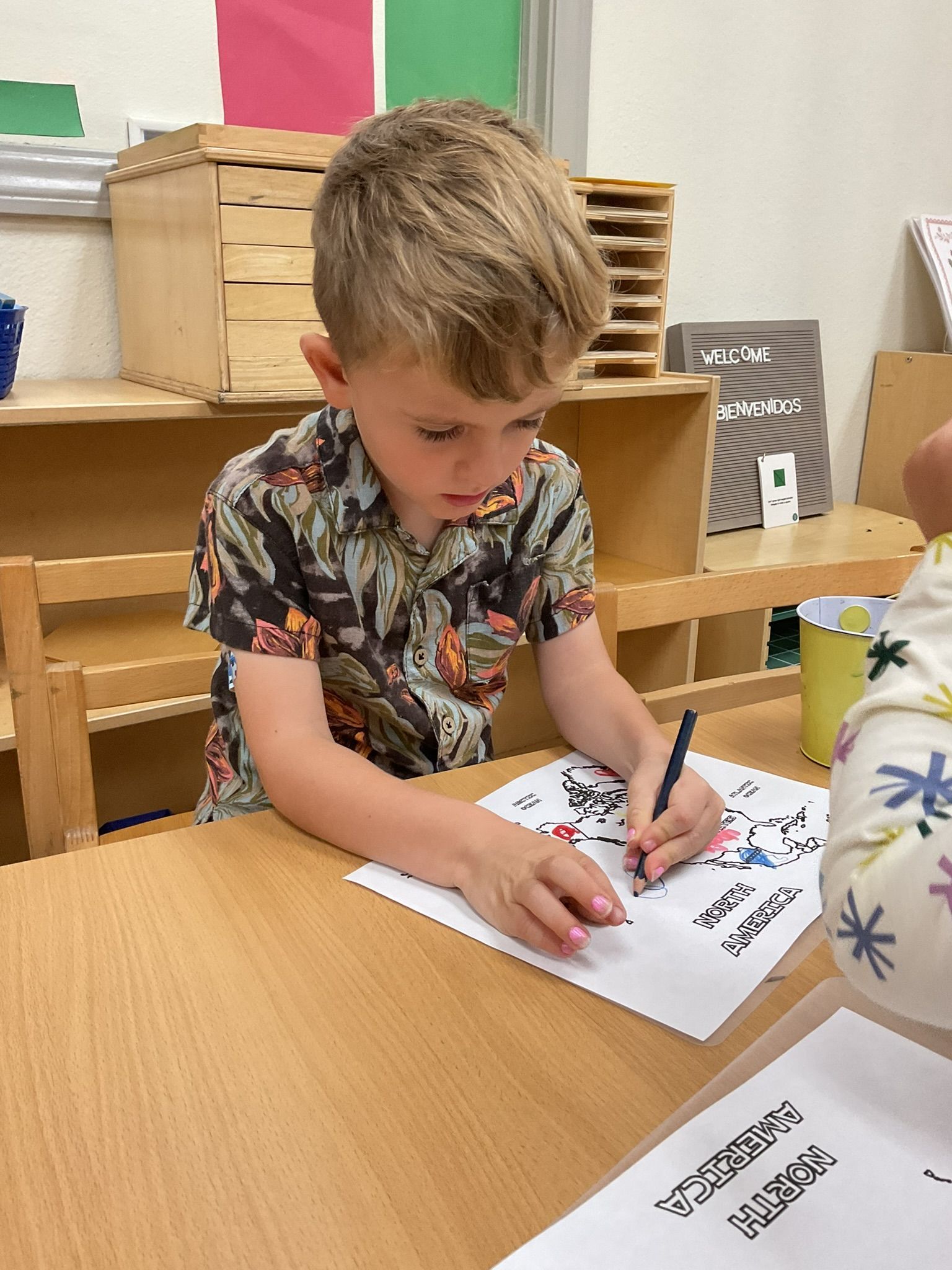 In geography, we learned about North America, and it’s been extra exciting because we’re learning everything in Spanish. It’s amazing to watch the children pick up new Spanish words and even start using them with each other, whether it’s saying gracias or por favor.