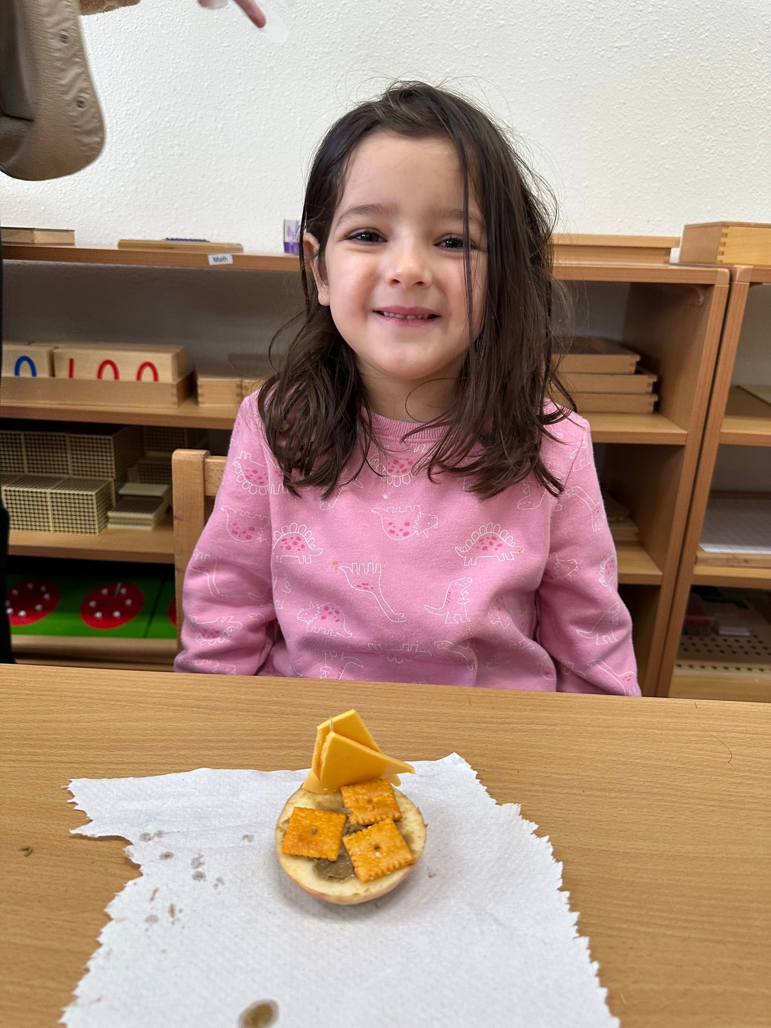 We also had a fun art session where we painted pinecones to learn about their texture and different sizes. Additionally, we painted with our fingers using primary colors to be introduced to Jason Pollock's ways of painting. The children also learned about the parts of the USA flag, including what the stripes and stars represent, and had a great time making their own flags. We talked about the different groups of food and categorized pictures of food by doing the Montessori 3-part card work. Overall, we had a lot of fun in November with our Harvest Feast and learning about gratitude!