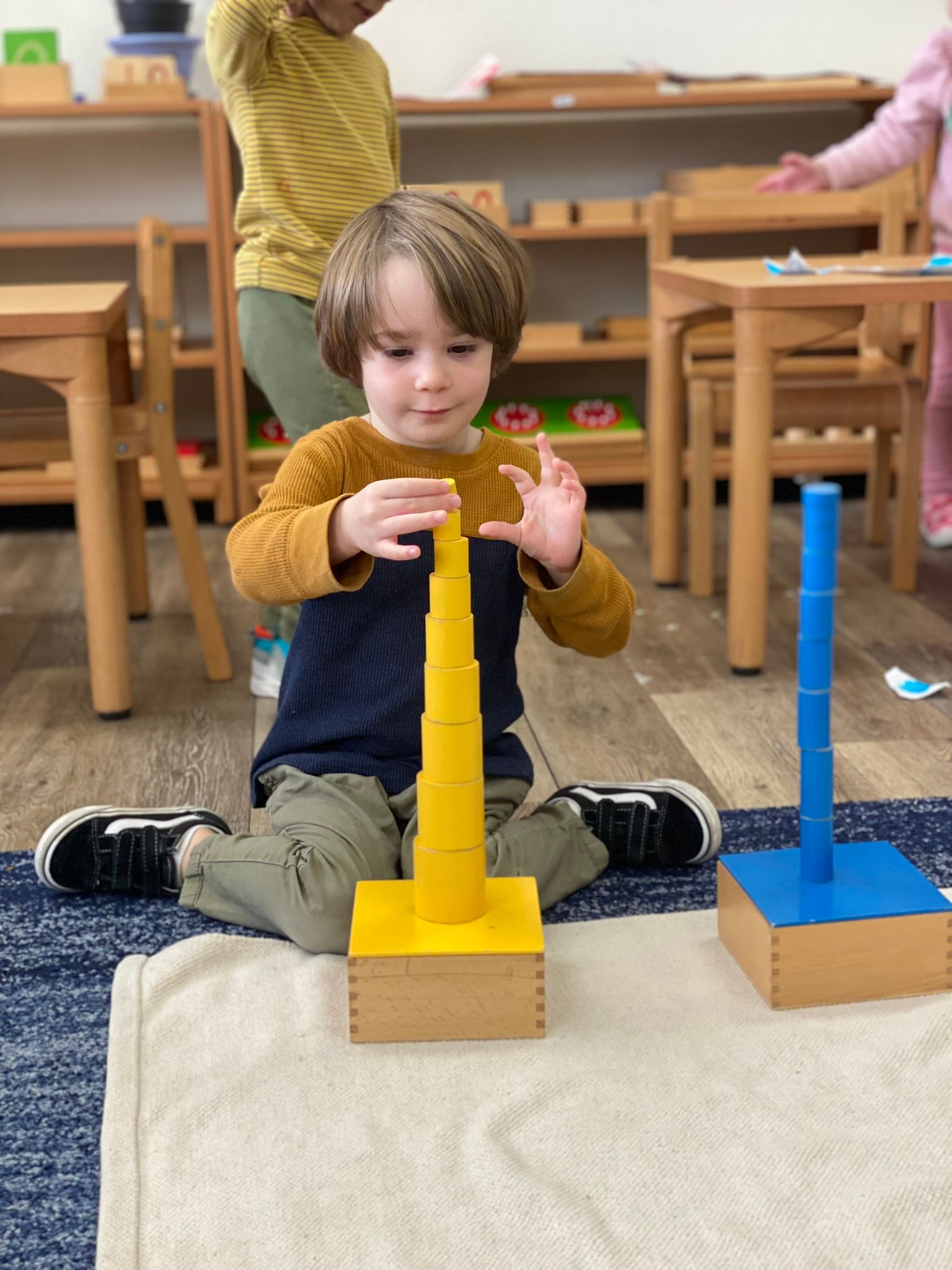 In Room 3, November proved to be an amazing month. We spent most of the month learning about Harvest and how to keep our bodies healthy. The students shared exercises and what they could eat to stay healthy. During their Montessori work, the children explored keeping their bodies healthy by learning about the food pyramid. We explored different parts of the world by learning the "50 Nifty" state songs and focused on California. The children also shared items that were native to California. Our Literature book for November was Fill a Bucket by Carol McCloud, which encouraged children to behave positively, be friendly, and help others when their emotional buckets were empty. In Zoology, we talked about living vs. nonliving items using picture cards and sorted them into living and nonliving categories. In Botany, we learned about parts of trees and different types of trees.