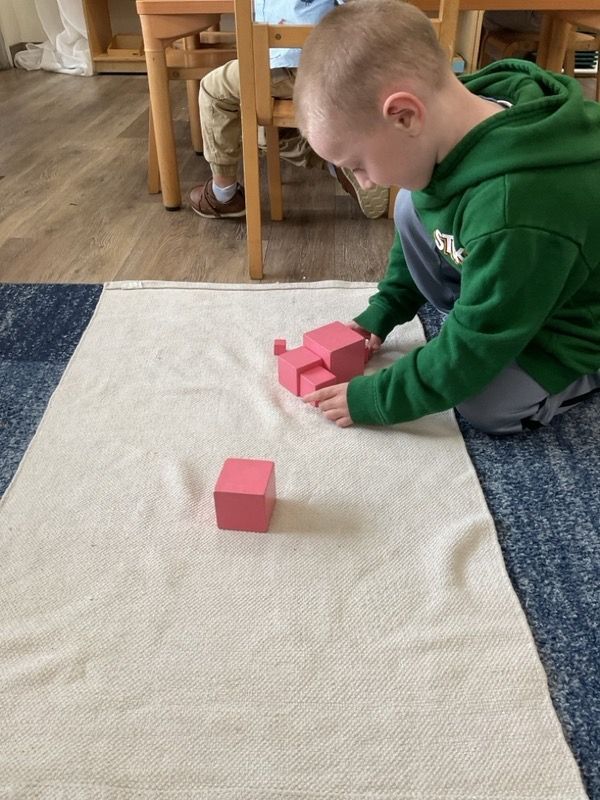 Throughout the month, we introduced a variety of classroom materials and routines. The children practiced how to set up and roll up a mat and learned valuable skills such as respecting materials, caring for their environment, and cleaning up after themselves. These early lessons helped foster independence, responsibility, and confidence in their ability to navigate the classroom on their own. It was inspiring to watch how quickly the children adapted and how eager they were to explore new materials and revisit activities they had already mastered.