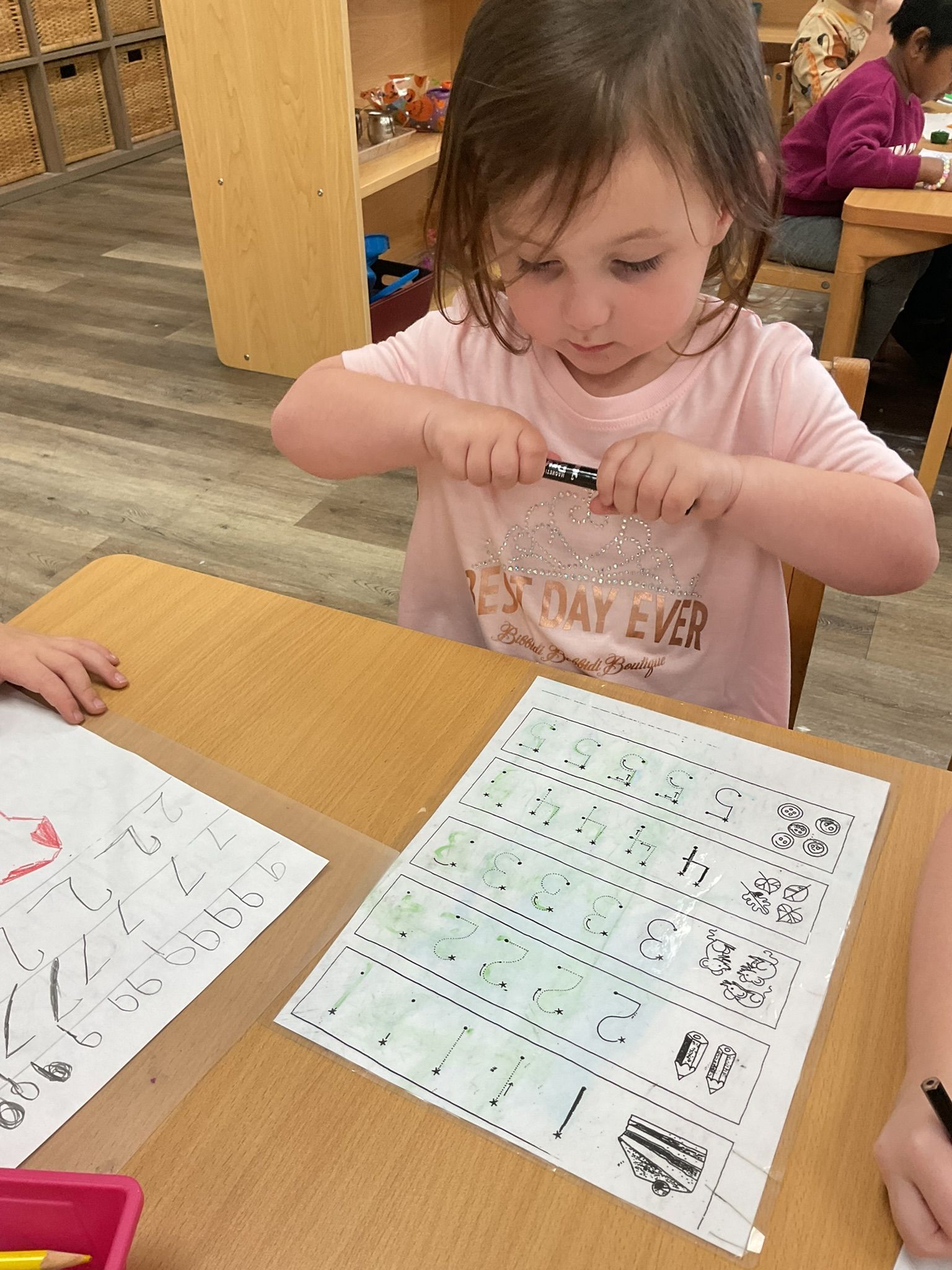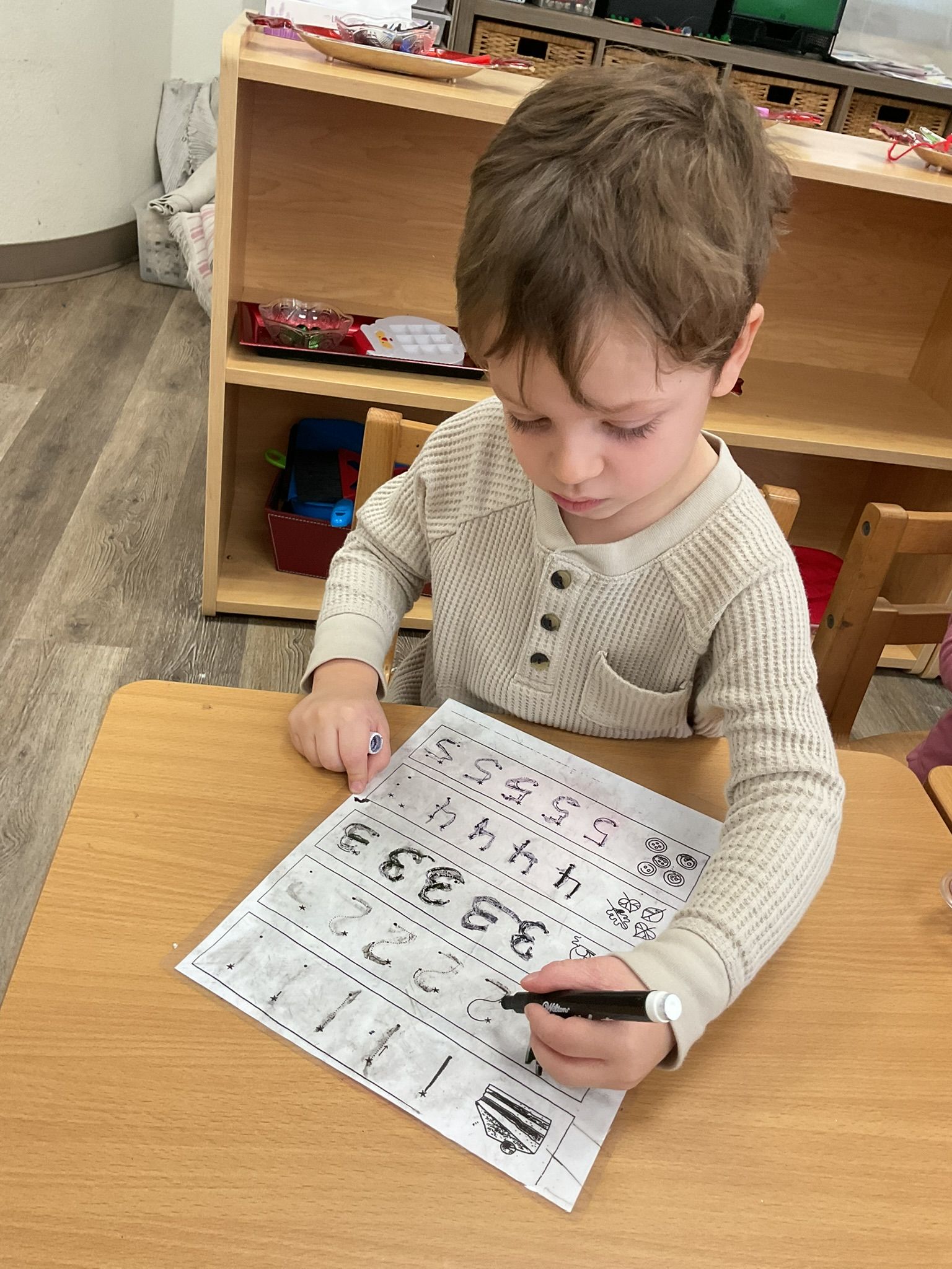 In Math, we focused on number recognition, counting, tracing numbers, exploring shapes, and comparing object sizes through circle time, play, and problem-solving activities.