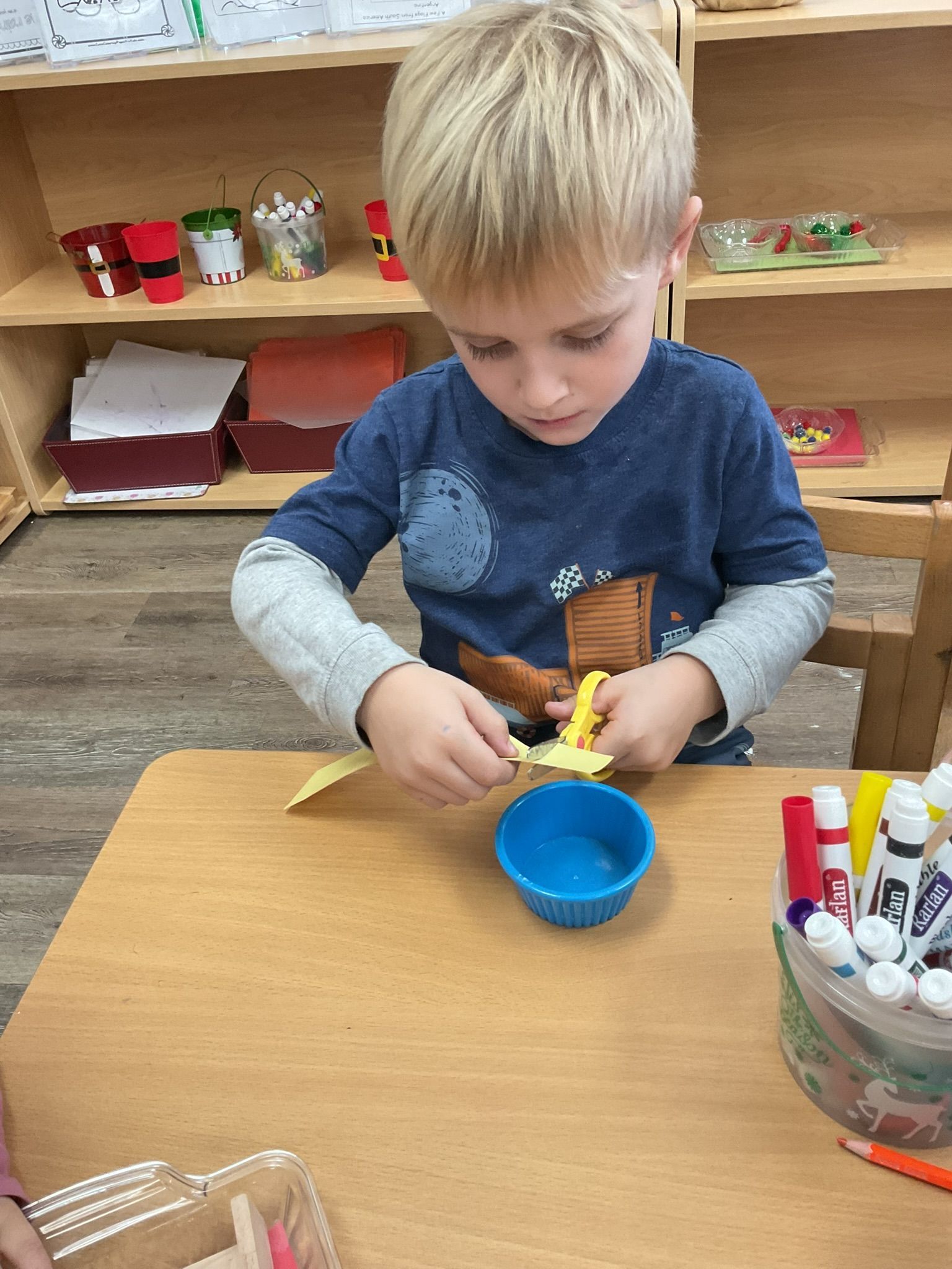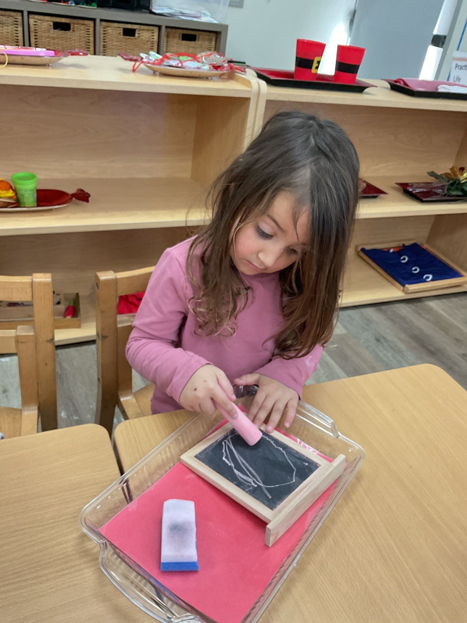 In November, we practiced many important classroom skills. In Practical Life, the children learned how to sweep with a child-sized broom, clean small messes with a dustpan and brush, and zip up their jackets. In Math, we worked on addition using golden beads, the stamp game, and real-life objects. In Language, we practiced CVC words, word families, blends, and new sight words (a, the, is, and). In Sensorial, we explored texture matching, flower-scent activities, and mystery bags.