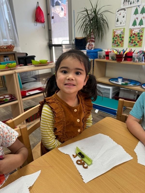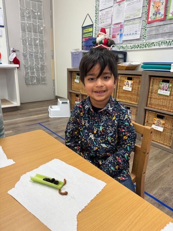 rainbow. In Music, we listened to the talented composer Antonio Vivaldi from Italy. Students listened to his famous symphony, “The Four Seasons,” and had the opportunity to perform classical dance along with the song. In cooking, we made delicious ants on a log! We used celery, cream cheese, and raisins. Students continue to work through ABC Mouse during computer time, learning math and language through interacting games. In Spanish, students also learned the colors of the rainbow. We practice and compare the name of the colors from English to Spanish through vocabulary and songs.