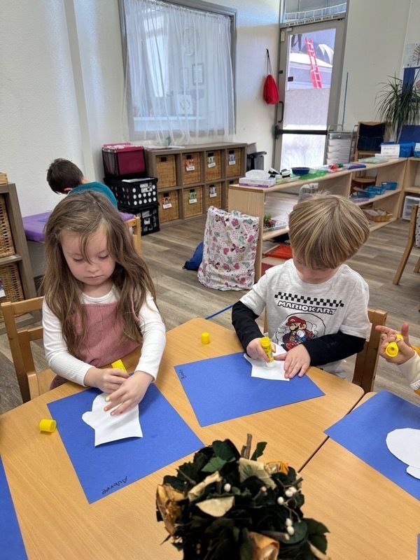 During Montessori work time, we were able to have hands-on experience with fake snow inside a big container that also included winter animals, which we were able to explore with. With this, we were able to make caves and dens for the animals to stay warm in.