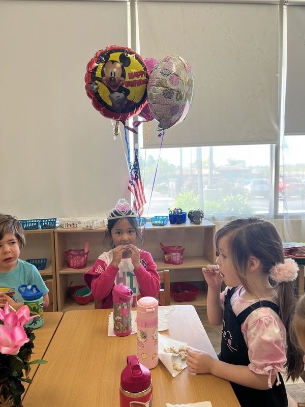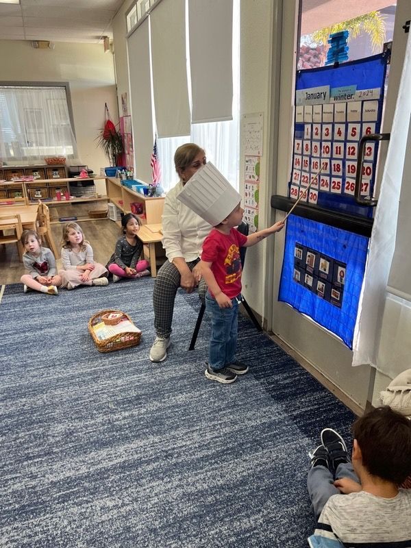 During circle time, we talked about the importance of treating our planet Earth with respect. Such as recycling plastic waste, throwing trash away in the trash can, planting flowers, etc. We actively practiced this in our classroom by throwing paper towels and paper we cut into the trash. We also focused on parts of a flower and what is needed for a flower to grow. Throughout April, we talked about our lunchtime manners, how to greet new people, and napkin folding/setting the table. It was great to observe and listen to how talking about manners during lunch time made a difference with friends reminding each other of the rules, such as not talking while eating, not pushing the tables, cleaning up and pushing in our chairs.