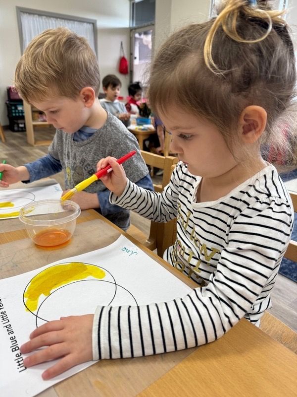 In February, we focused on the book “Little blue and little yellow,” by Leo Lionni. It was a great way for us to understand the importance of friendship and acceptance. We used the meaning of this book through the month of February to use it as a way of allowing different friends to include everyone during outside playtime and work time.