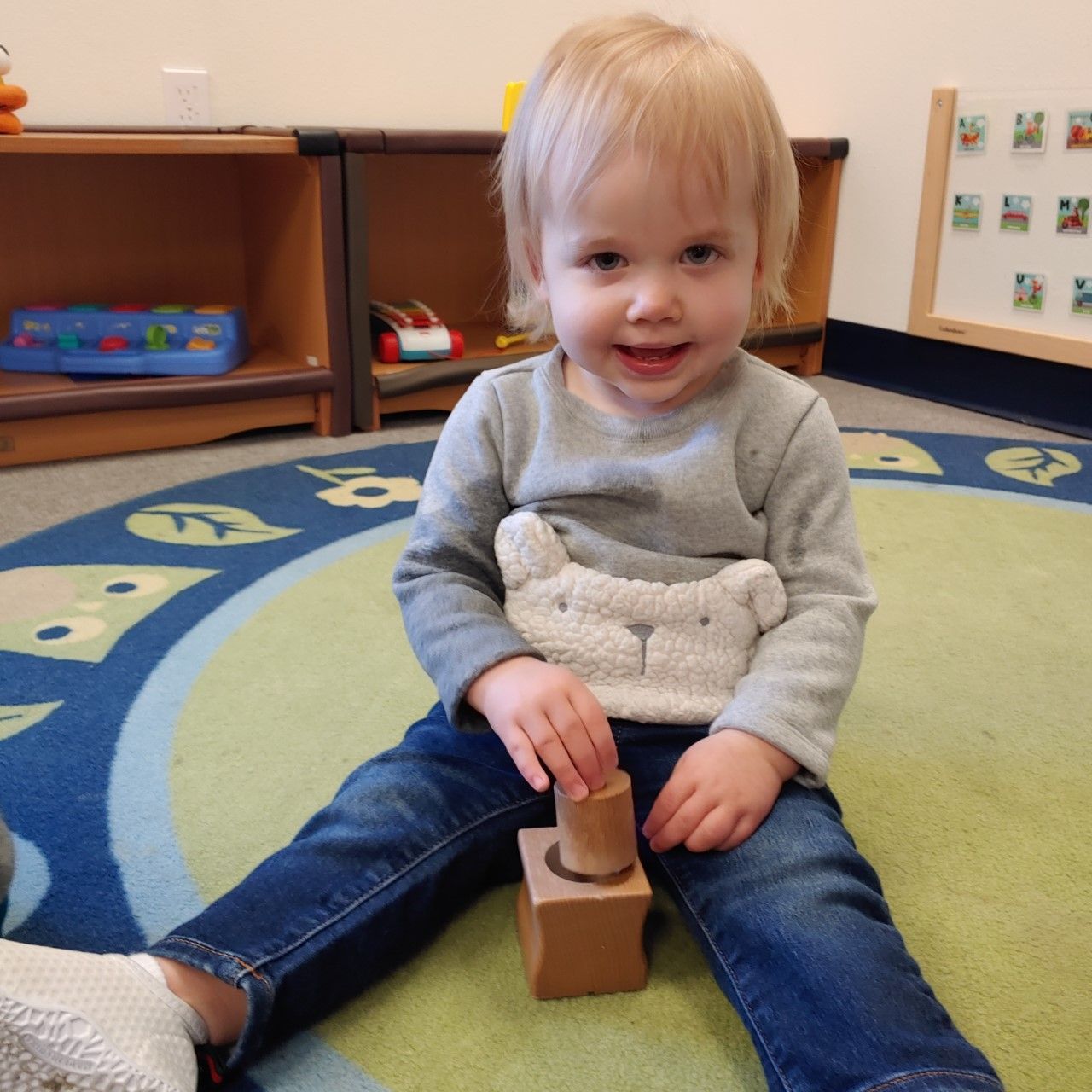 Our Waddler Program starts at the age of 12 months and continues until 18 months of age. This classroom helps bridge the gap between our Infant and Toddler classrooms. We will work to help every child feel comfortable in our daily group schedule and family-style lunches, as well as build confidence to try new things and make new friends. The directress will create new and exciting activities to help your child grow to their fullest potential. As their development progresses rapidly and changes quickly, our Directress will use a daily communication from to exchange information with parents and chart the needs of these children until they transition into our Toddler program.